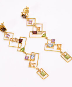 Trendy 925 Sterling Silver Multi Gemstone Drop Earring Gold Plated Earring Unique Design Drop Earring