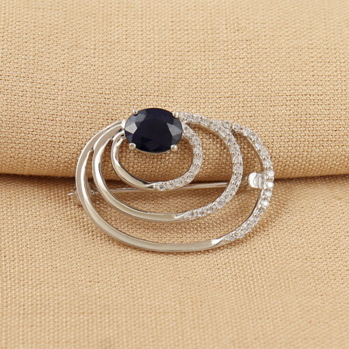 925 Sterling Silver Blue shappier Gemstone Silver Plated Brouch Pin