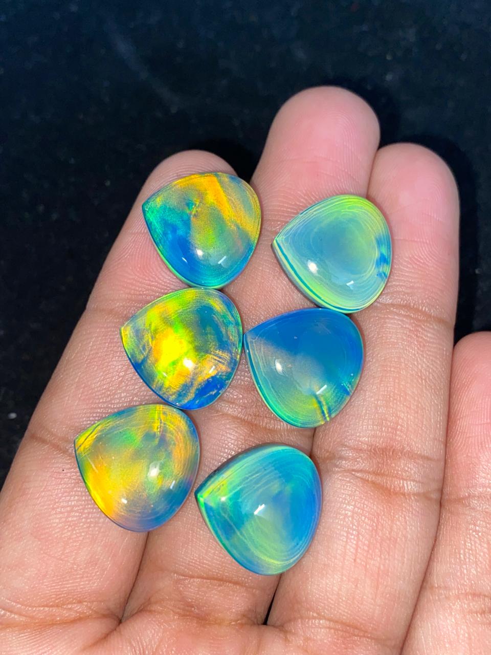 Blue Green Synthetic Opal Trillion Cabochon | Lab Created Opal Loose Stone for Jewelry Making