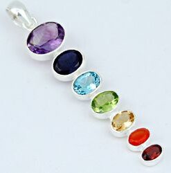 Dainty 7 Chakra Gemstone Pendant Handmade 925 Sterling Silver Pendant, Party Wear Jewelry, Multi Color Stone Pendant For Birthday Gifts