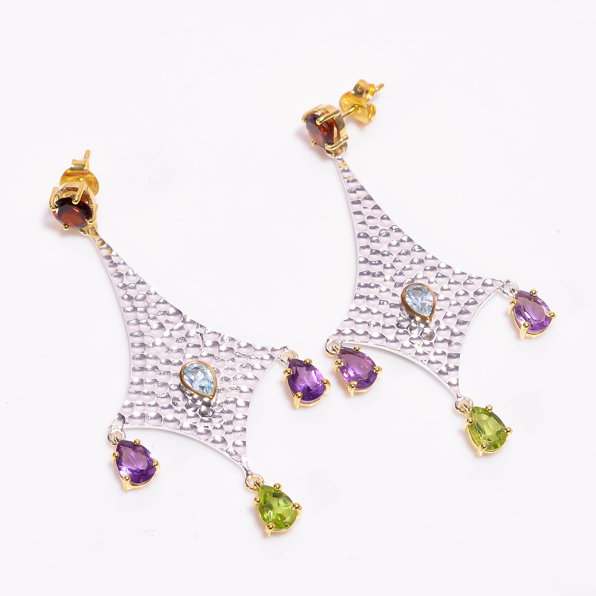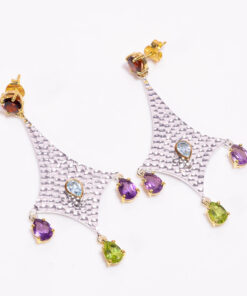 Multi Semi Gemstone Earrings, Pave Earring, 925 Sterling Silver Jewelry Silver Plated Earrings, Gemstone Silver Earrings, Women’s Gift Jewelry