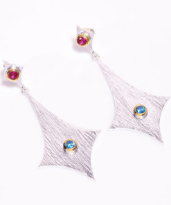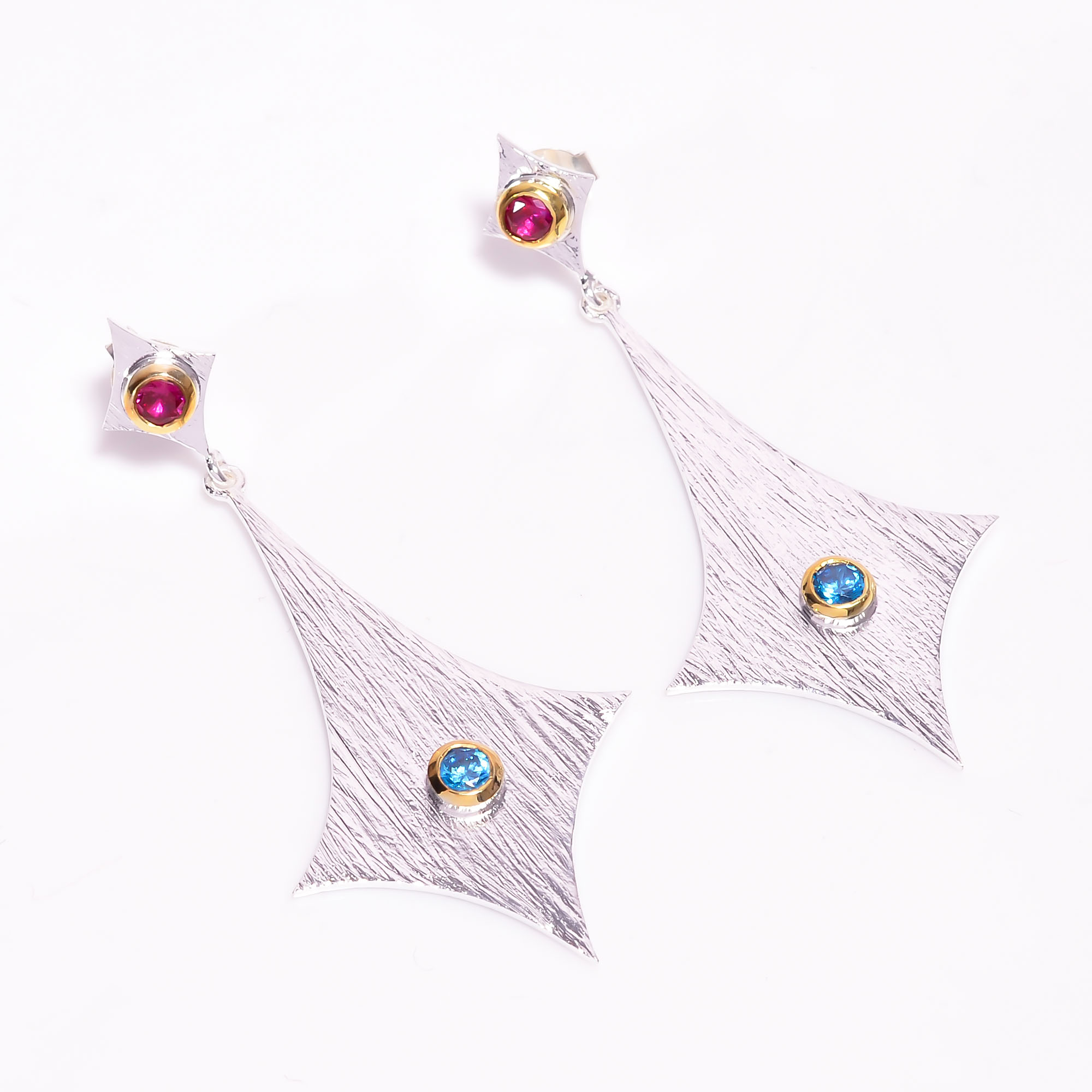 Natural Swiss Blue Topaz Earring – Sterling Silver Matte Finish Earring – Gemstone Earring – Birthstone Earring – Dangle Earring