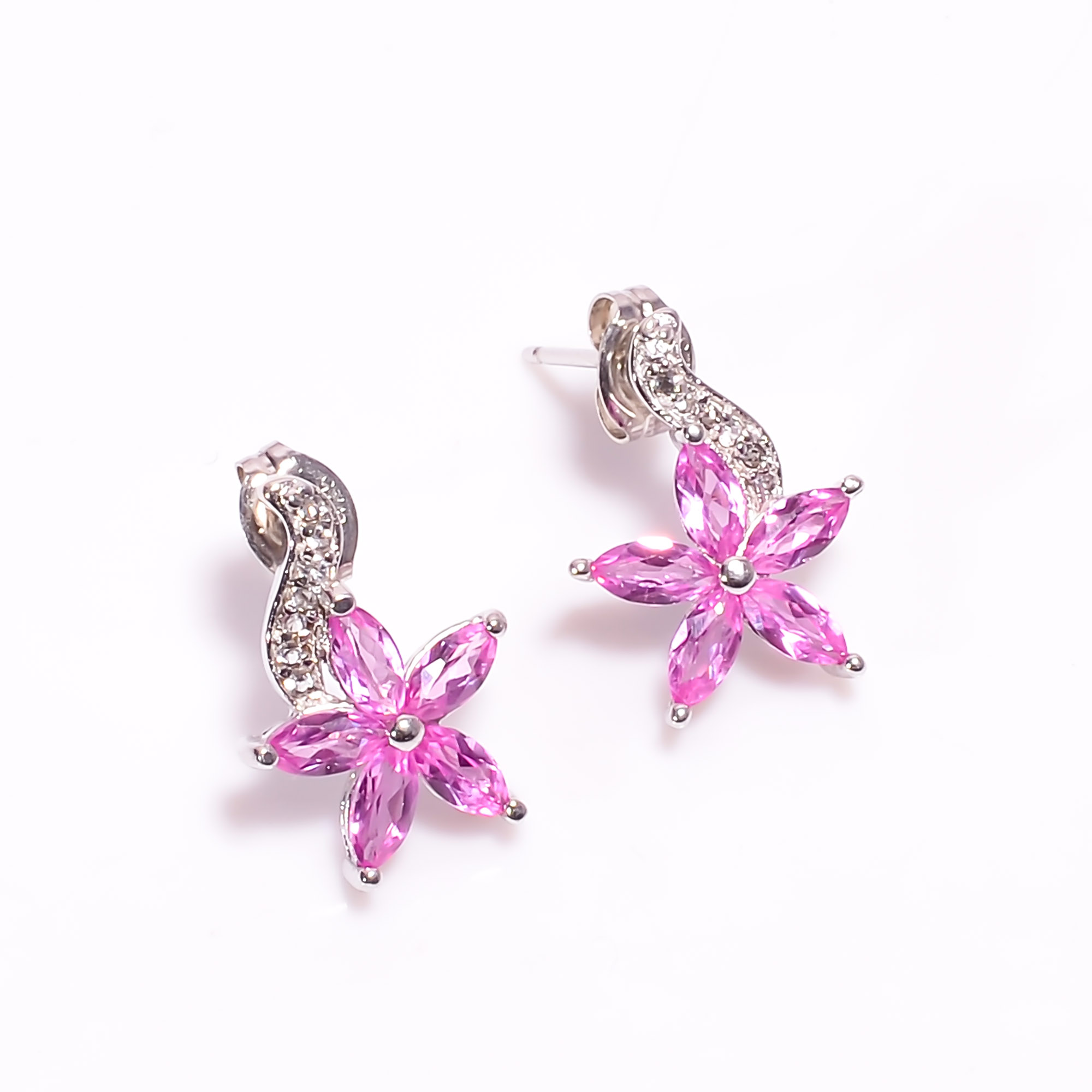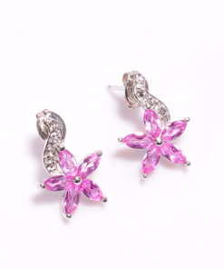 Stardust Tourmaline Flower Stud Earrings in Sterling Silver – Gold or Silver – Tourmaline Forget-me-not – Tourmaline Cluster – Pink Tourmaline Stud Earrings